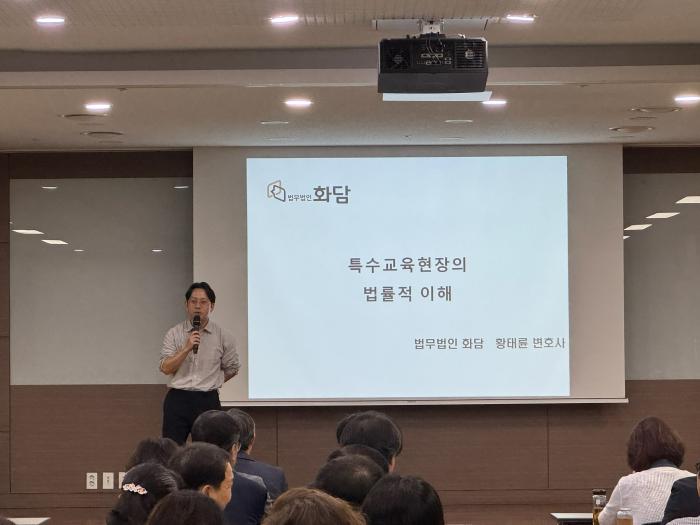 평택교육지원청에서 열린 ‘장애인식개선 및 역량 강화 연수’에서 황태륜 변호사가 특수교육 현장의 법률 사례를 설명하고 있다. ⓒ평택교육지원청 제공[평택=주간시민광장] 임종헌 기자경기도평택…