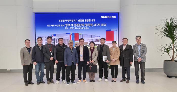 왼쪽부터 김완영 평택시 생태하천팀장, 김훈 평택환경행동 대표, 박하진 삼성전자 그룹장, 김경호 평택지속가능발전협의회 부회장, 전명수 서평택환경위원회 위원장, 조종건 평택시민환경연대 대표, 조승자 …