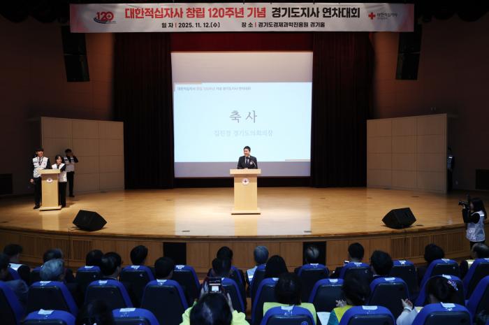 축사하는 김진경 경기도의회 의장(사진=경기도의회 제공)[경기=주간시민광장] 조종건 기자대한적십자사 창립 120주년을 기념하는 경기도지사 연차대회에서 김진경 경기도의회 의장(더민주·시흥3)이 “적십…