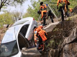 ○ 경기도북부특수대응단 등 수도권 6개 특수대응(구조)단, 지진 사고 대응 능력 강화를 위한 인명구조 합동훈련 실시○ 3일 특수구조대원 60여 명, 차량 14대, 구조장비 105점을 활용한 절벽에 고립된 차량…