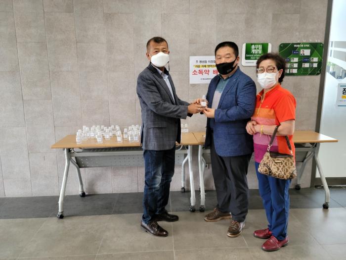 평택시 팽성읍 이장협의회는 7월 12일 사회적 거리두기 최고수위인 4단계 실시에 따른 코로나19 지역사회 확산 차단과 사각지대 예방을 위한 긴급 코로나19 자체방역회의를 개최하고 팽성읍 관내 73개 마을에 소독약을 배부하여 주민들의 안전을 위한 마을별 자체긴급방역활동을 실시했다.