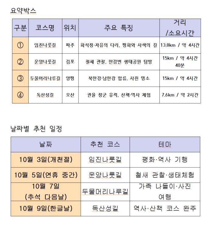 경기도 관계자는 “연휴 기간 가족과 함께 옛길을 걸으며 자연과 역사를 체험하는 시간을 가져보시길 바란다”고 밝혔다.