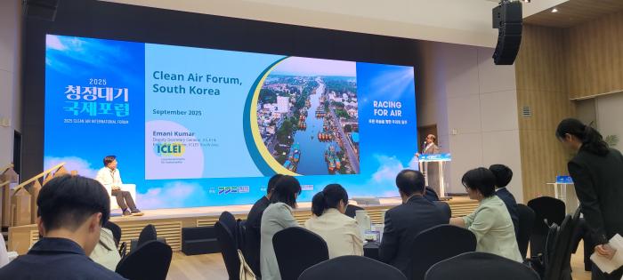 유엔이 공식 지정한 ‘푸른 하늘의 날(9월 7일)’을 기념해 열린 「2025 청정대기 국제포럼」이 지난 9월 2일 경기도 광교에서 개최됐다. ‘푸른 하늘을 향한 우리의 질주(RACING FOR AIR)’를 주제로 열린 이번 포럼은 지방정부 간 기후행동 전략을 공유하고, 국제 연대의 가치를 재조명하는 자리였다. 에마니 쿠마르 ICLEI 아시아사무소 부사무총장의 발표 내용은 다음과 같다.