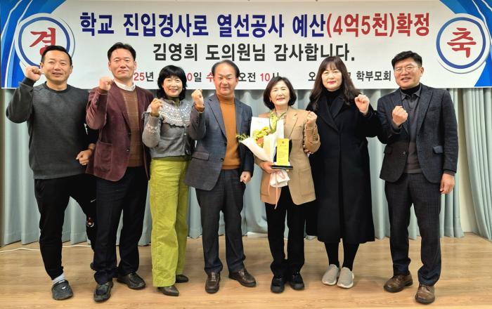 김영희 의원은 오산정보고 통학로 개선 공로로 학부모회로부터 감사패를 받았다. 급경사 진입로에 열선을 설치해 학생 안전을 확보한 사례다. 그는 현장 요구를 행정과 예산으로 연결한 결과라고 설명했다. 앞으로도 학생 안전을 최우선에 두겠다고 밝혔다.