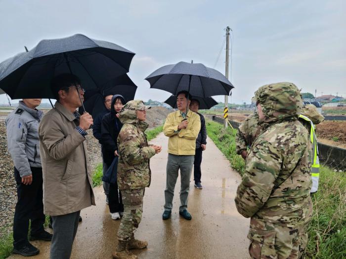 정장선 평택시장은 7일 평택시의회 유승영 의장과 함께 제8전투비행단 소속 F-16 전투기 추락사고 현장을 방문하여 잔해물을 수거중인 미군과 주변지역을 통제하는 경찰관계자를 격려하고 미51전투비행단장 조슈아 우드대령의 설명을 청취했다.