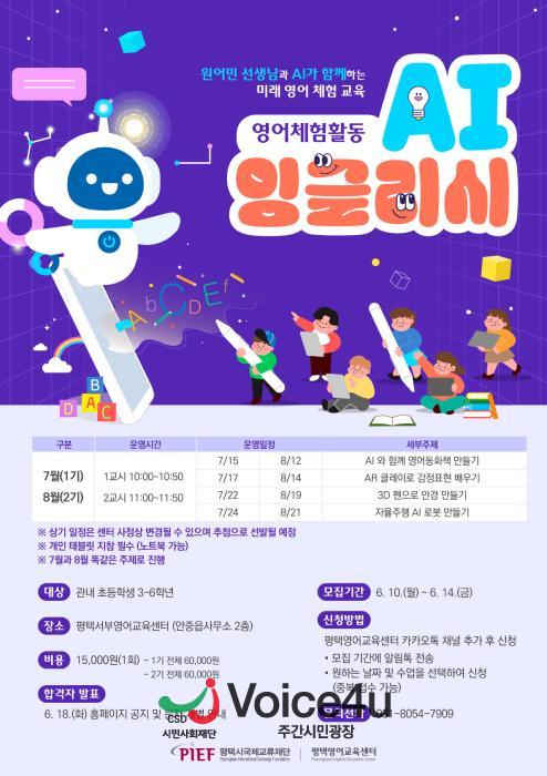 평택시국제교류재단에서 오는 12일부터 20일까지 인공지능(AI) 영어 교육 프로그램 ‘AI 잉글리시’를 진행할 예정이다.