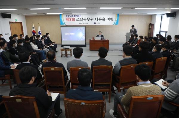 조달청은 27일 8층 대회의실에서 약 80여명의 직원들이 참석한 가운데 제3회 ‘타운홀 미팅’을 개최했다.