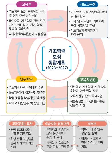 교육부는 모든 학생의 기초학력을 보장하는 국가 교육책임제 실현을 위해 '제1차 기초학력 보장 종합계획(2023~2027)'을 마련했다.