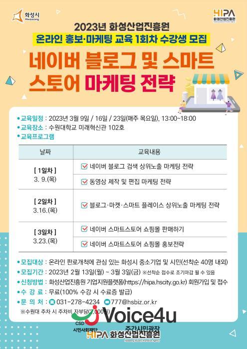 화성산업진흥원이 ‘2023년 온라인 홍보·마케팅 교육 1회차’ 수강생을 모집한다.