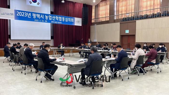 평택시농업기술센터에서는 지난 23일 농업관련 기관장, 농학계열 교수, 분야별 전문농업인으로 구성된 심의위원이 참석한 가운데 농업산학협동심의회를 개최하였다. 이번 심의회에서는 농업기술보급 시범사업 49종 70억원의 사업안건을 심의했으며, 각 사업별로 시범요인을 고려하여 171개소를 공정하게 선정했다.