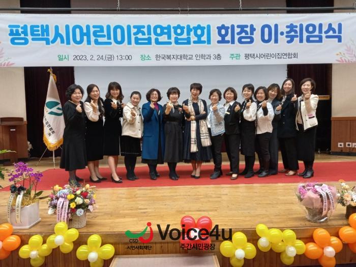 평택시어린이집연합회(회장 인미숙)가 지난 24일 260여 명의 원장이 참석한 가운데 한국복지대학교 인학관 3층에서 어린이집연합회 회장 이·취임식을 개최했다.