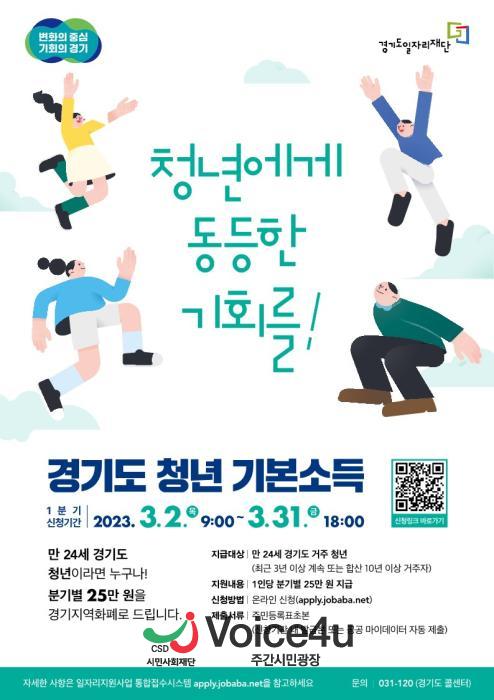 경기도 일자리지원사업 통합접수시스템 잡아바(apply.jobaba.net)에 3월 2일 이후 발급한 주민등록초본을 첨부하여 신청하면 심사를 거쳐 4월 20일 카드형 지역화폐로 지급되며, 분기별 25만원씩, 1인당 연 100만원이 지원된다.