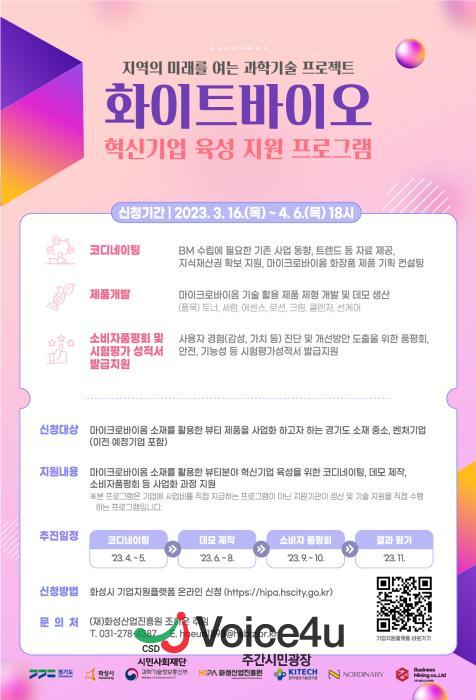 ‘화이트바이오 혁신기업 육성지원 프로그램’은 오는 4월 6일까지 화성산업진흥원 기업지원플랫폼(hipa.hscity.go.kr)에서 확인할 수 있다.