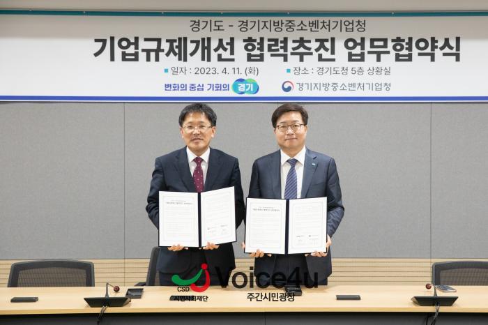 염태영 경기도 경제부지사와 이상창 경기지방중소벤처기업청장은 11일 오후 경기도청 상황실에서 이런 내용을 담은 ‘기업규제개선 협력 추진 업무협약’을 체결했다.