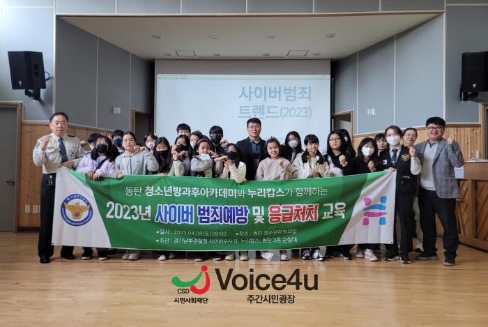 (재)화성시여성가족청소년재단 동탄청소년문화의집 방과후아카데미는 지난 4월 8일(토)에 경기남부지방경찰청 누리캅스와 함께 심폐소생술 안전교육과 사이버범죄 예방교육을 진행하였다.