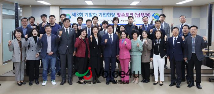 염태영 경기도 경제부지사가 25일 오후 안성시에 위치한 씨앤지하이테크㈜에서 ‘제3회 기발한 기업현장 맞손토크’를 열고 경기도 남부권역 소재 기업인들과 소통했다.