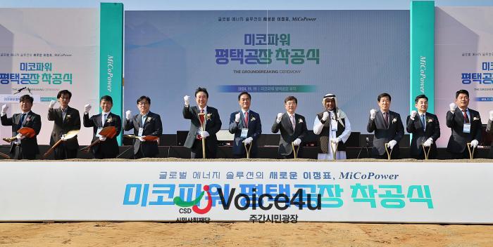 이날 착공식에는 정장선 시장을 비롯해 강정구 평택시의회 의장, 미코그룹 전선규 회장, 미코파워 하태형 대표이사, 유병우 평택도시공사 본부장 등 300여 명이 참석해 미코파워 신공장 착공식을 축하했다.