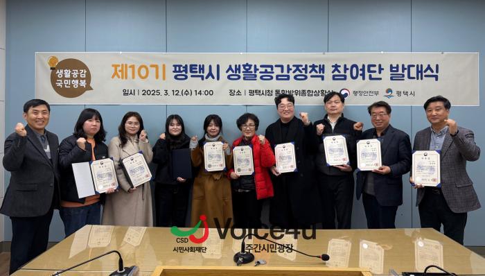 평택시(시장 정장선)는 지난 12일 평택시청 통합방위종합상황실에서 ‘제10기 평택시 생활공감정책 참여단 발대식’을 개최했다.