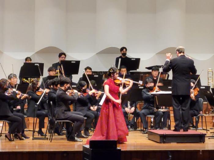 네 번째 순서는 Asia Pacific International School 9학년에 재학중인 김요빈 양이 C. Saint-Saens 의 Violin Concerto No.3 in b minor, Op.61연주를 들려 주었다.생상스 특유의 서정적이면서도 정열적인 연주를 오케스트라와 함께 주고 받으며, 조화롭게 이어가는 연주를 선보였다.